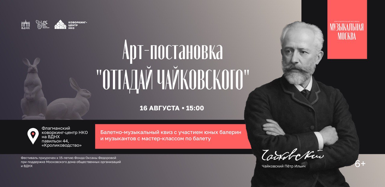 16 августа состоится открытие благотворительного фестиваля «Музыкальная Москва» на ВДНХ – программа мероприятия будет посвящена 185-летнему юбилею самого популярного русского композитора в мире – Петра Ильича Чайковского.